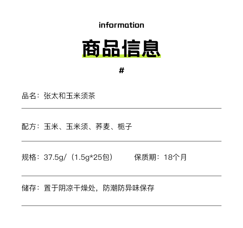 张太和 玉米须茶 37.5g(1.5g*25包)五袋装