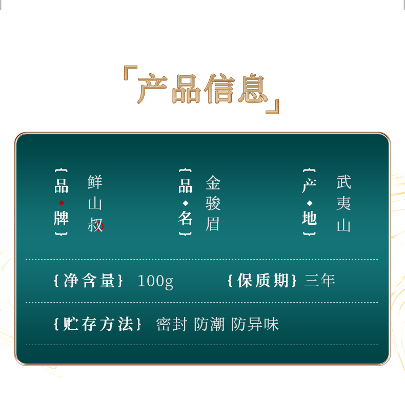 鲜山叔 武夷山茶叶金骏眉100g/1盒(木盒铁罐装)