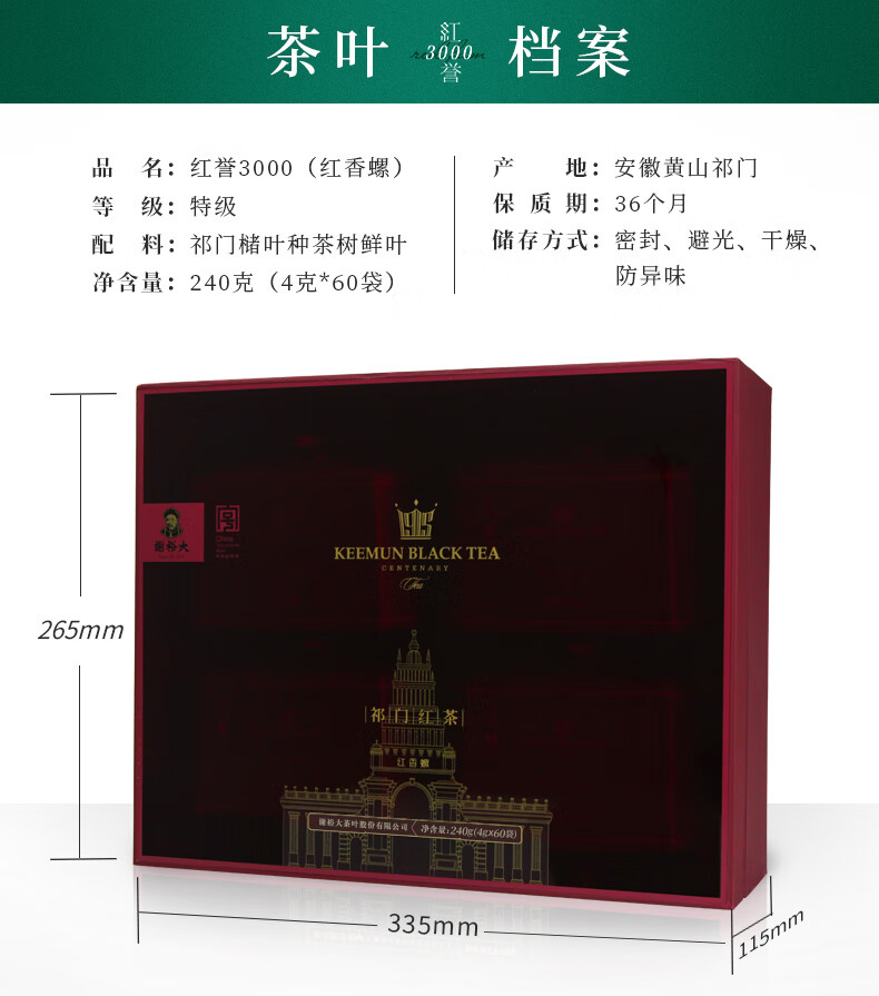 谢裕大 祁门红茶红誉3000(红香螺) 240g/盒