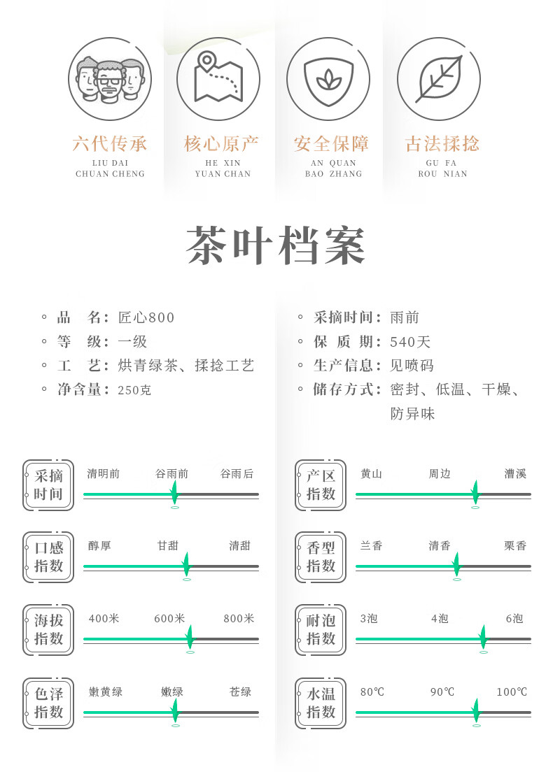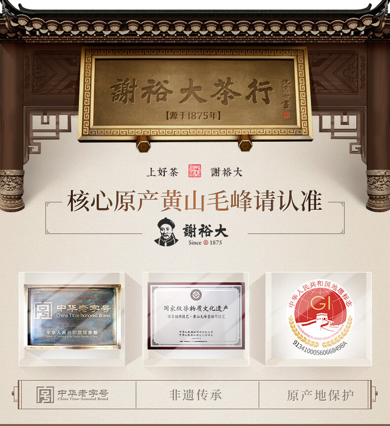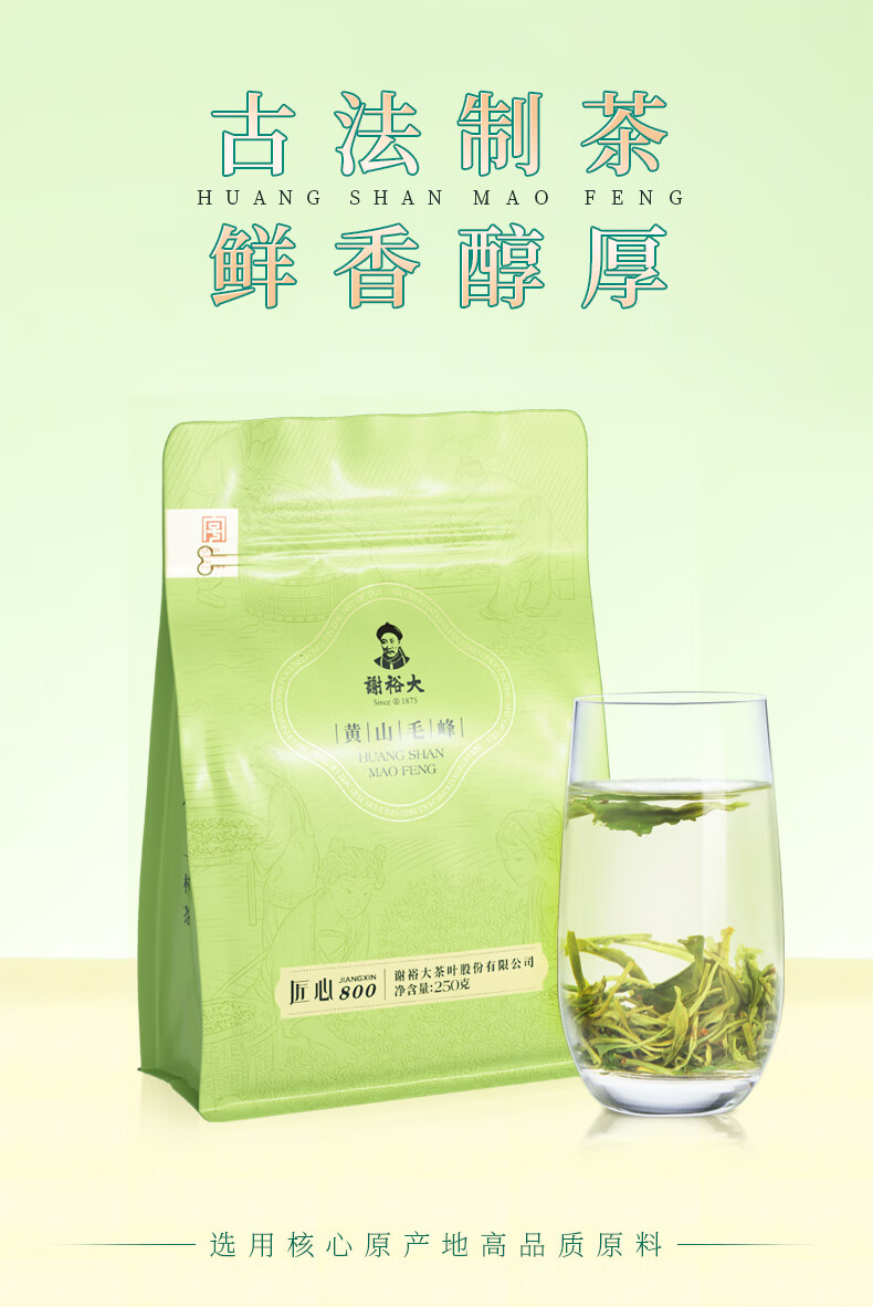 谢裕大 黄山毛峰匠心800绿茶 250g/袋