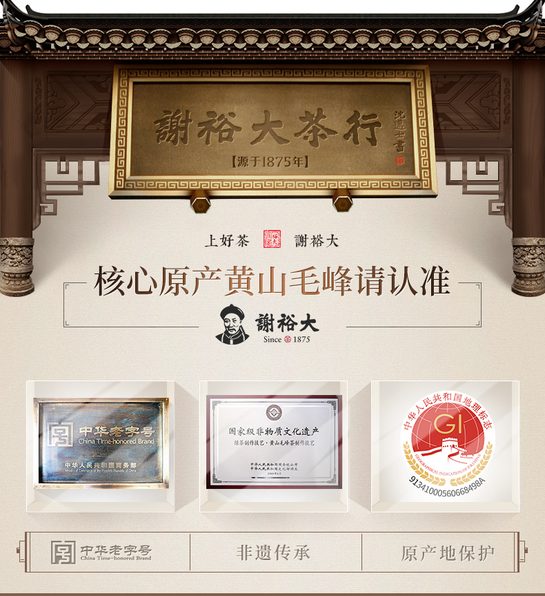 谢裕大 黄山毛峰铭门3000绿茶礼盒270g