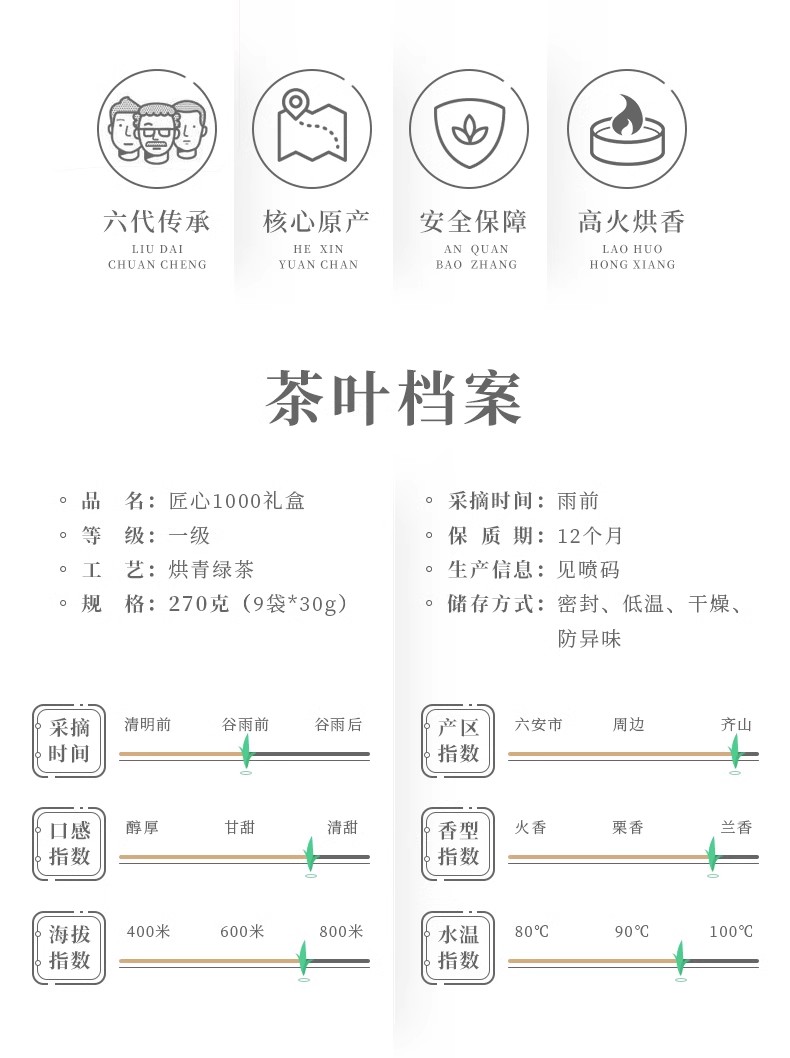 谢裕大 安吉白茶匠心1000绿茶礼盒270g/盒