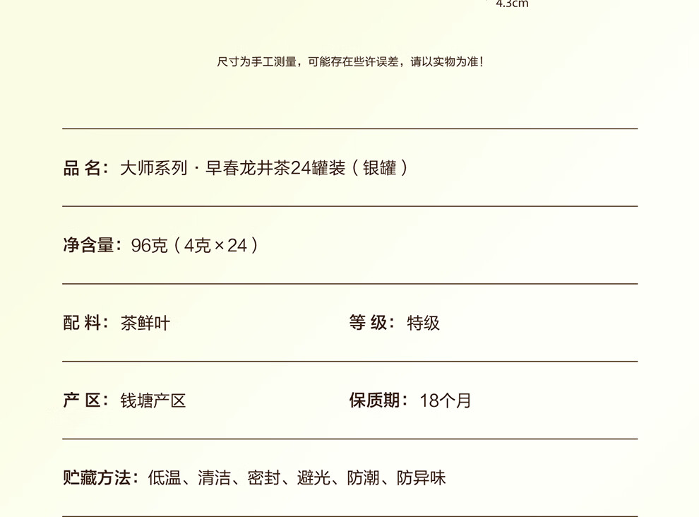 小罐茶园 小罐茶 大师系列·早春龙井茶24罐装(银罐) 4.0版A