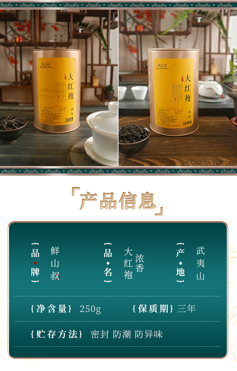 鲜山叔 武夷山茶叶浓香型大红袍250g/1罐
