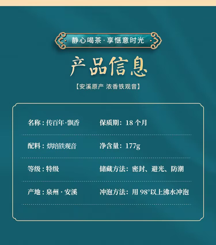 传百年 飘香(烘培铁观音)180克/盒(7.5克*24泡)