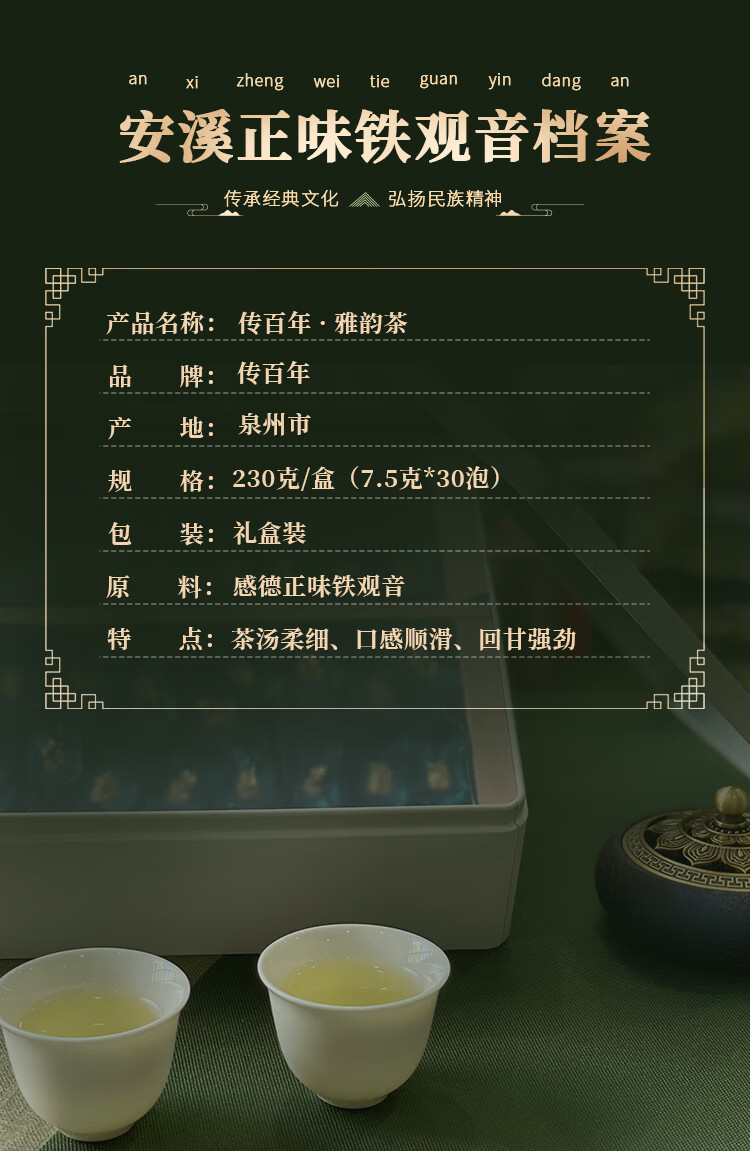 传百年 雅韵(正味铁观音)230克/盒(7.5克*30泡)