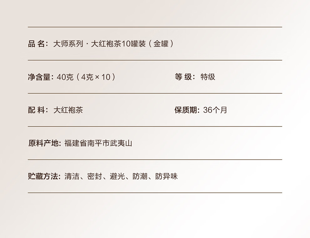 小罐茶园 小罐茶 大师系列·大红袍茶10罐装(金罐)4.0版A