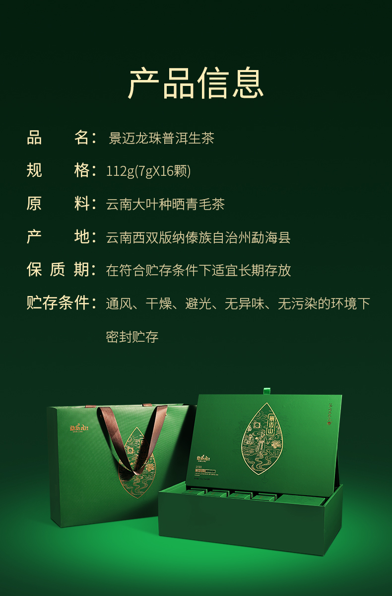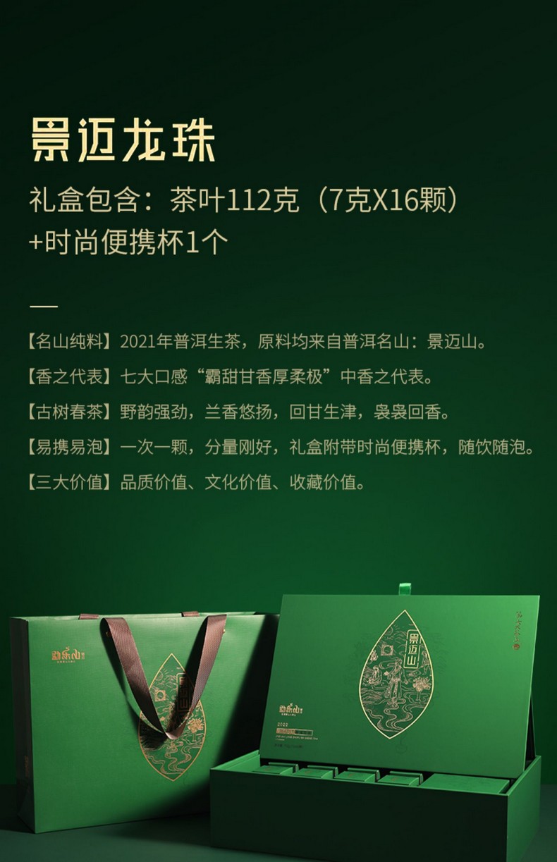 【勐乐山】2022第七大茶山(景迈龙珠)生茶礼盒装(带杯)112g