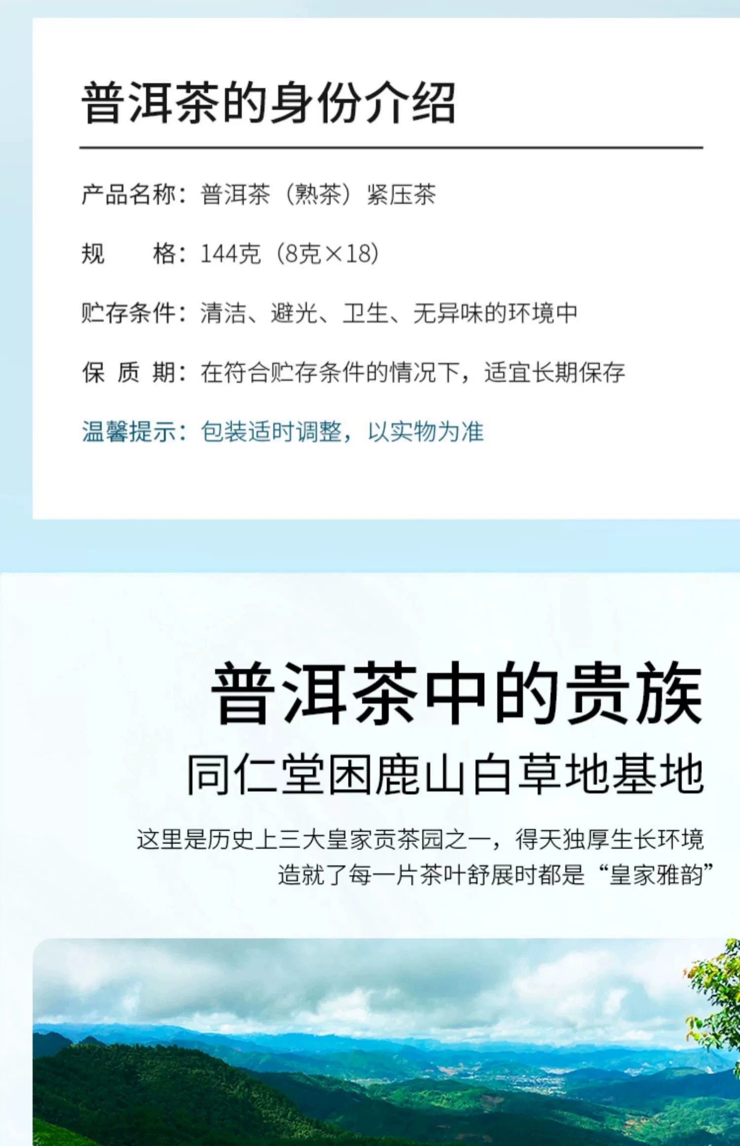 北京同仁堂普洱(熟茶)紧压茶144g/盒(8g*18)