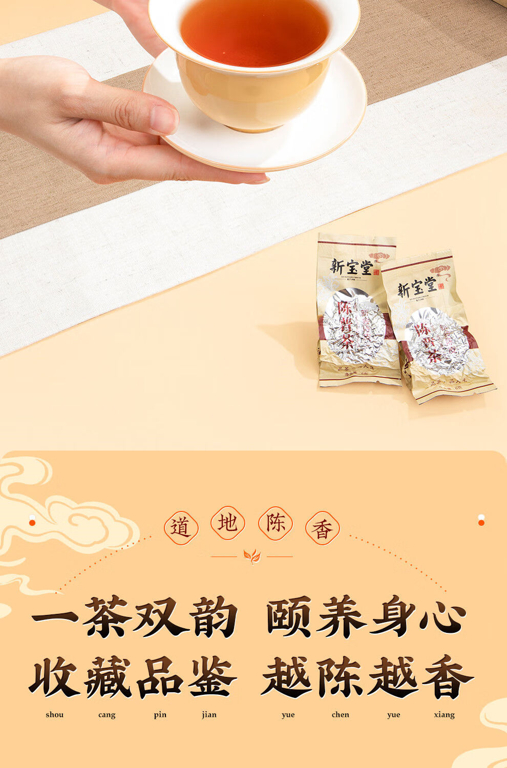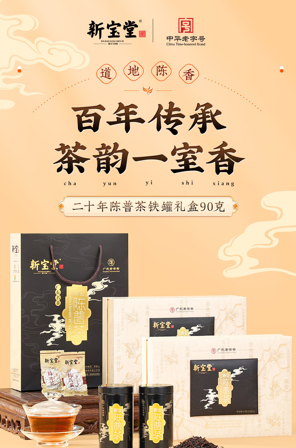 【新宝堂】 二十年陈皮 普洱茶铁罐礼盒90g
