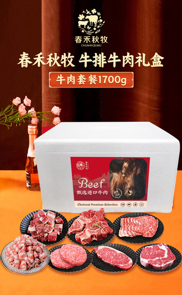 春禾秋牧可溯源高品质畅销牛肉礼包1700g