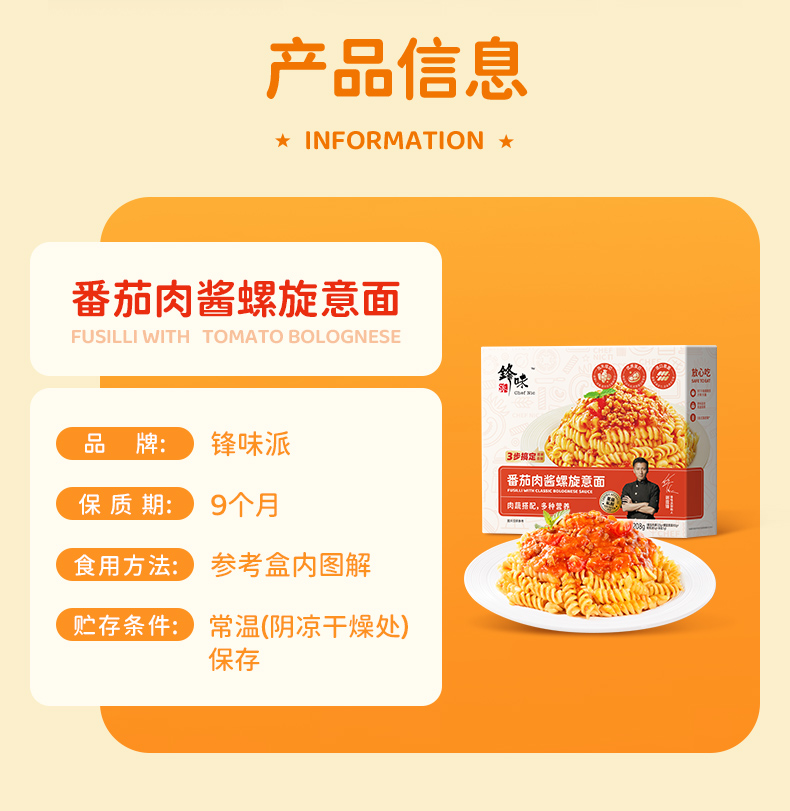 锋味派番茄肉酱螺旋意面208g