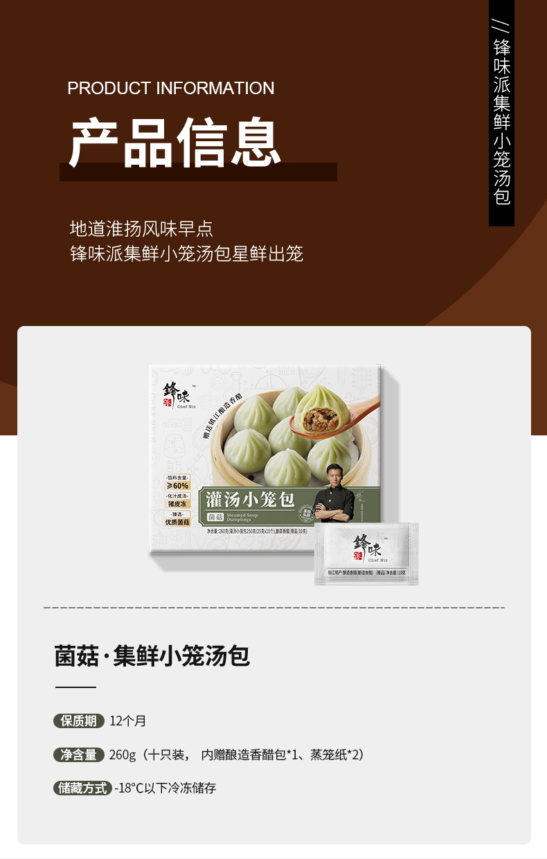 锋味派菌菇集鲜小笼汤包260g