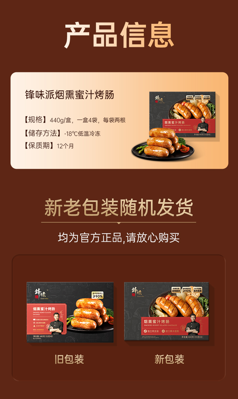 锋味派烟熏蜜汁烤肠440g