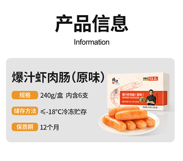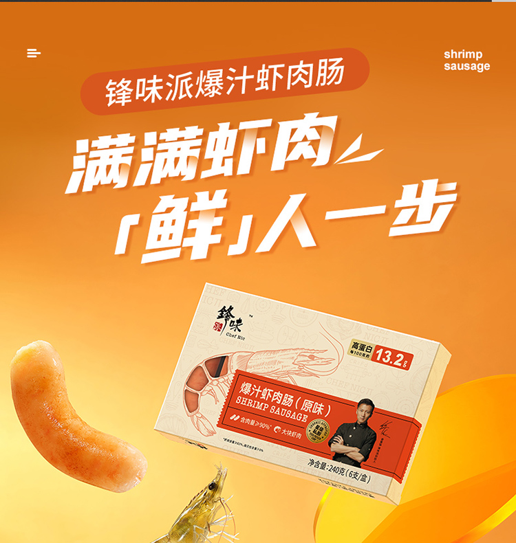锋味派原味爆汁虾肉多多肠240g