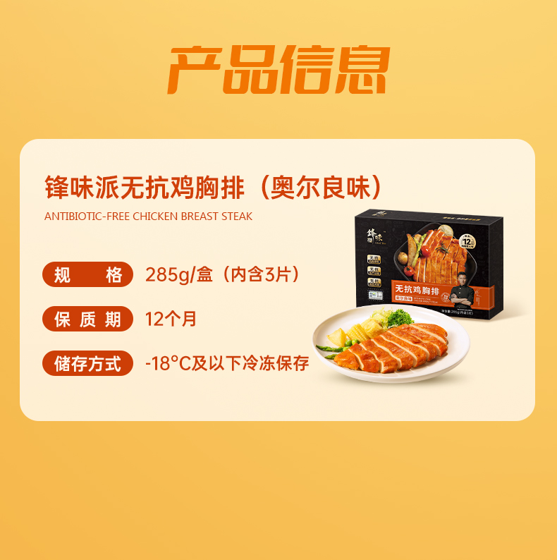 锋味派无抗鸡胸排(奥尔良味)285g