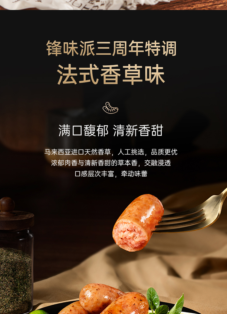 锋味派法式香草味猪肉爆汁烤肠 440g