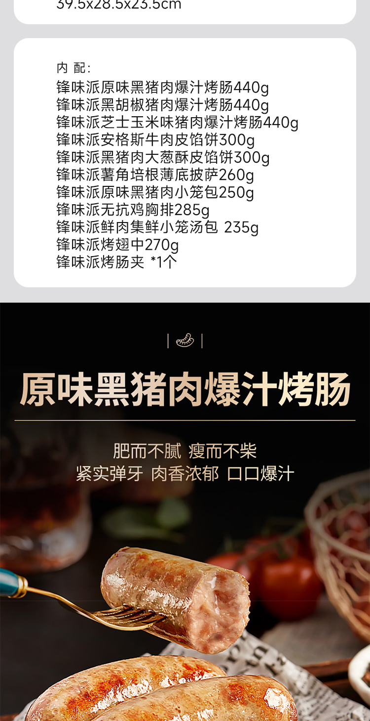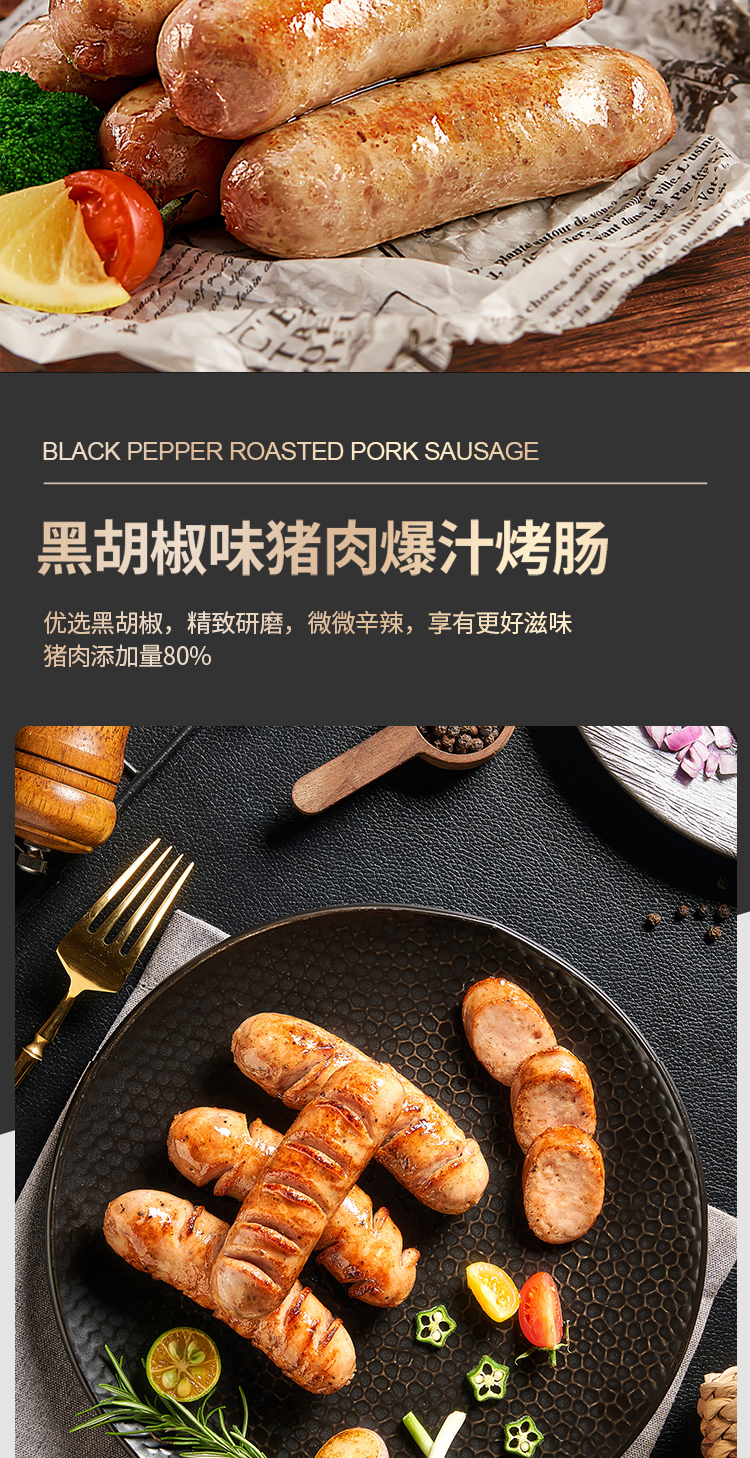 锋味派黑胡椒猪肉爆汁烤肠 440g