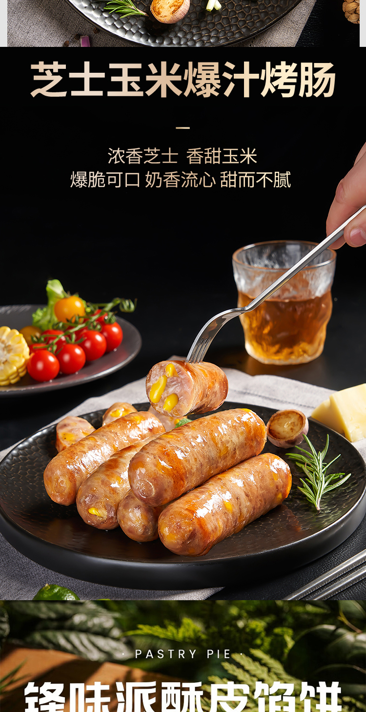锋味派芝士玉米味猪肉爆汁烤肠 440g