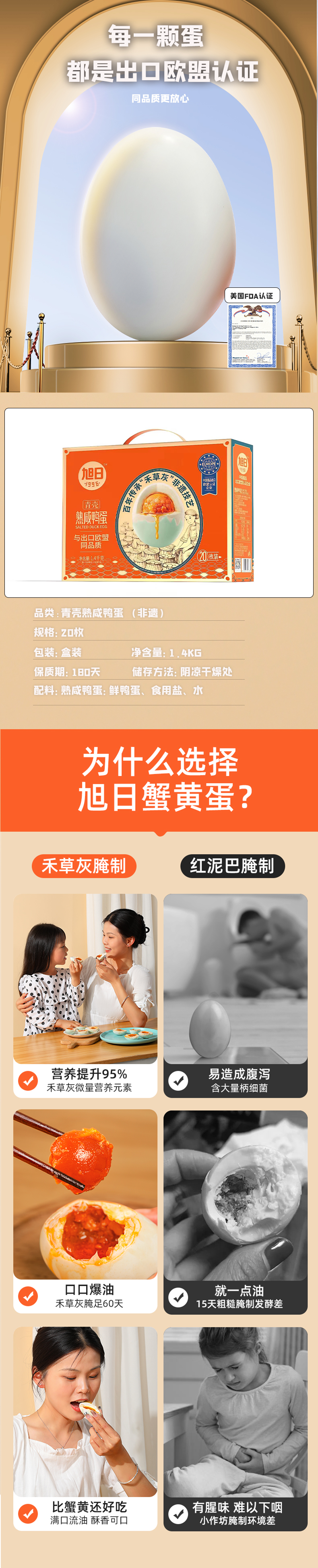 旭日1996熟咸鸭蛋(青壳非遗)礼盒1400g/盒(70g*20枚)
