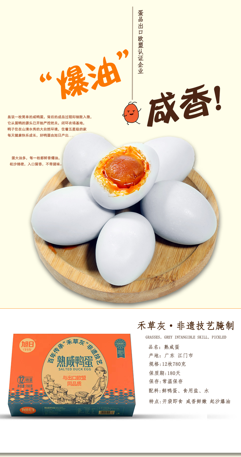 旭日1996 熟咸鸭蛋盒装780g/盒