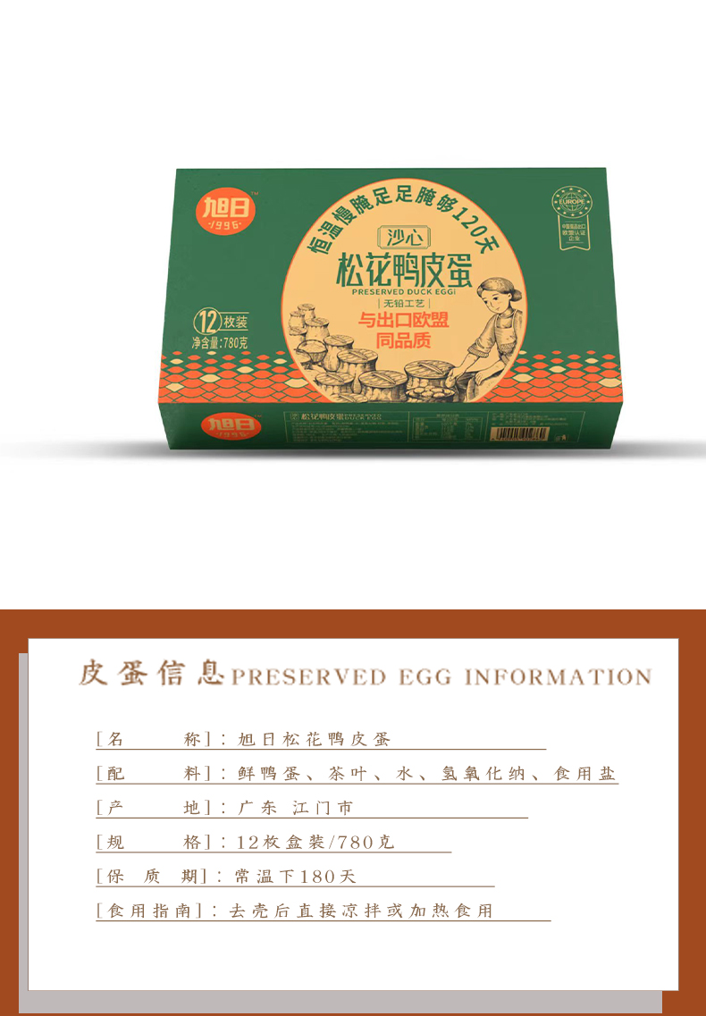 旭日1996 沙心松花鸭皮蛋盒装780g/盒