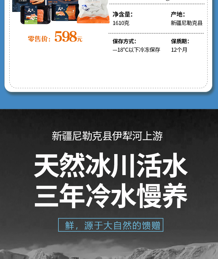 【天蕴】鱼跃天山 三文鱼礼盒598型1610g