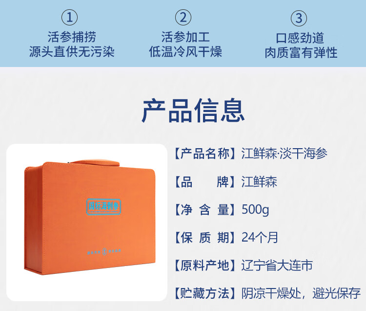 江鲜森国标·生态淡干海参5980款 500g(50-55头)