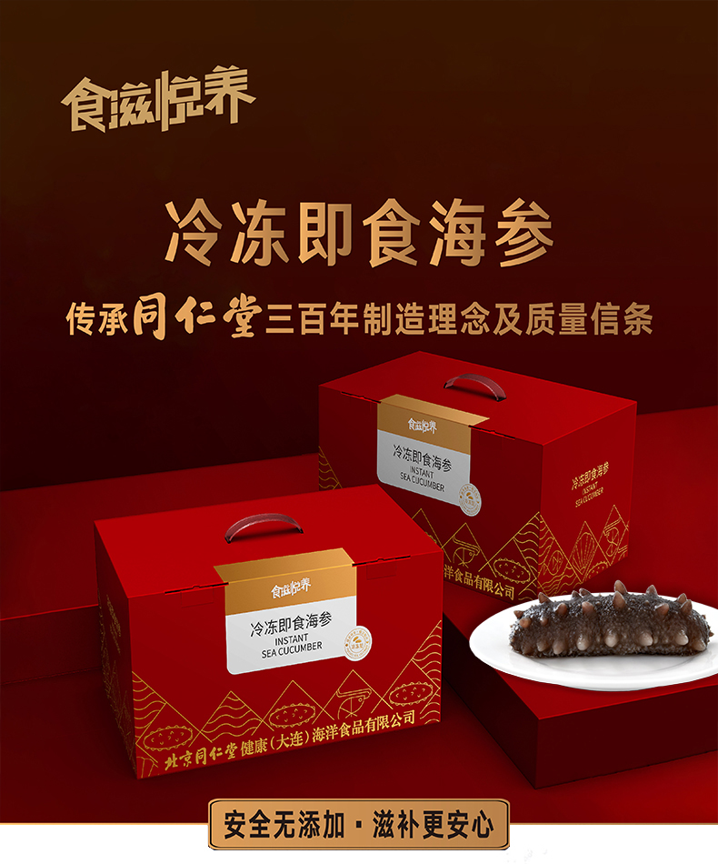 北京同仁堂冷冻即食海参3斤装/箱 9-11头/500g*3袋/箱