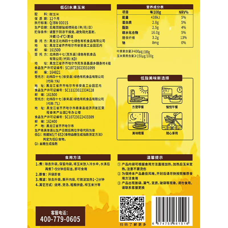 北纬47度水果鲜玉米220g*8/盒(丰收纪念版)