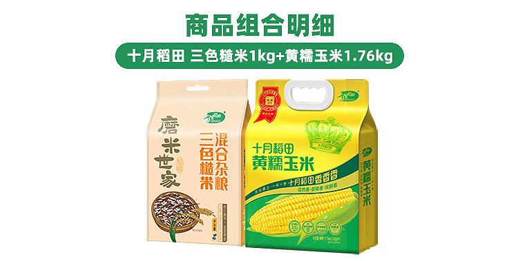 十月稻田 三色糙米1kg+黄糯玉米1.76kg