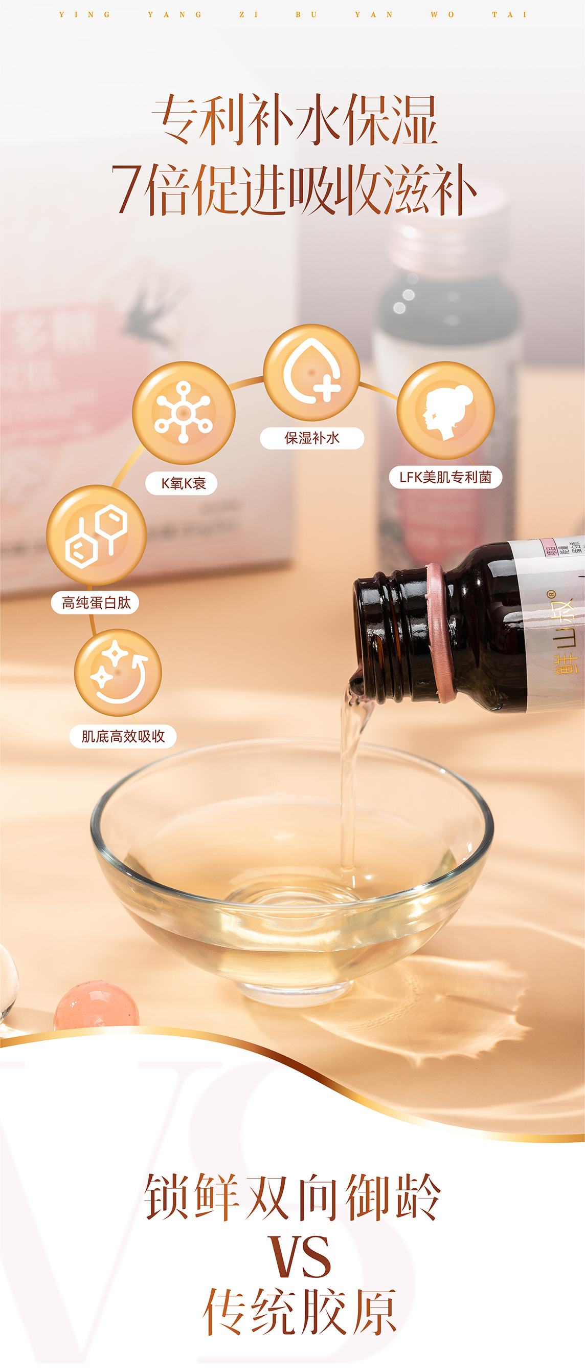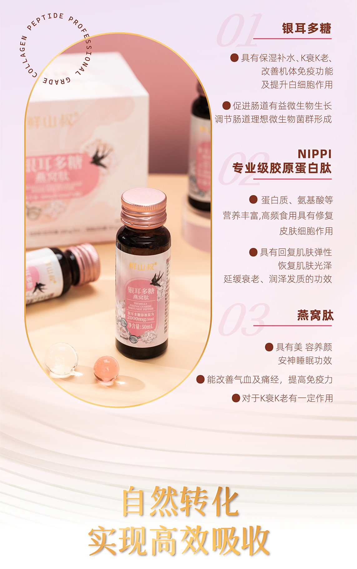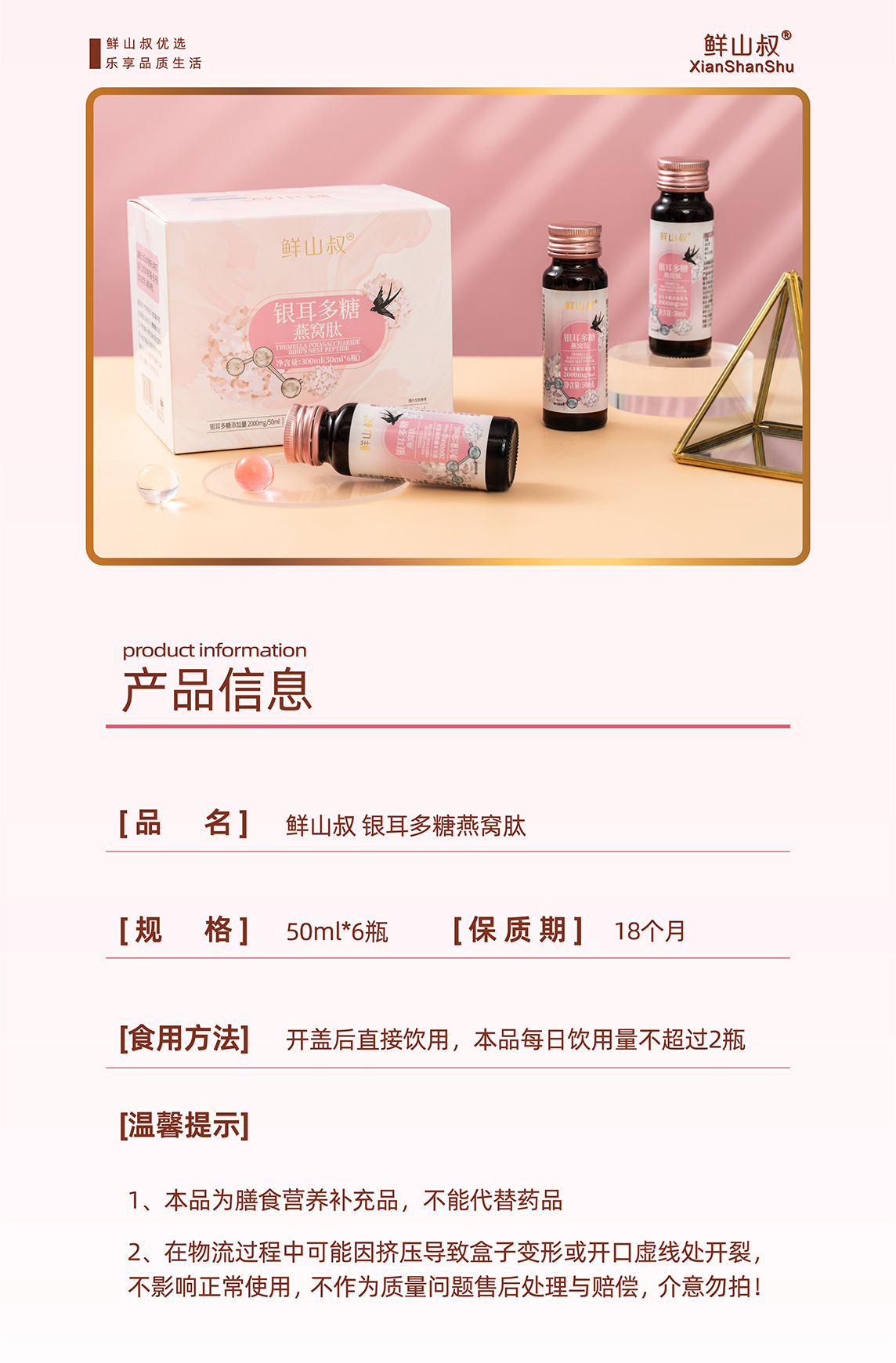 鲜山叔 银耳多糖燕窝肽胶原蛋白保湿抗皱美容养颜50ml*6瓶