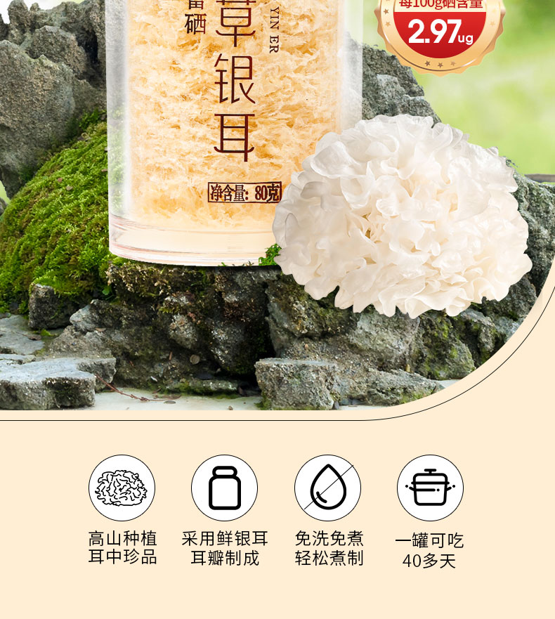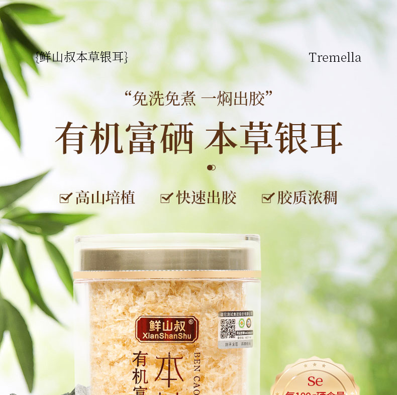 鲜山叔 有机富硒本草银耳80g/1罐 【送小金勺】