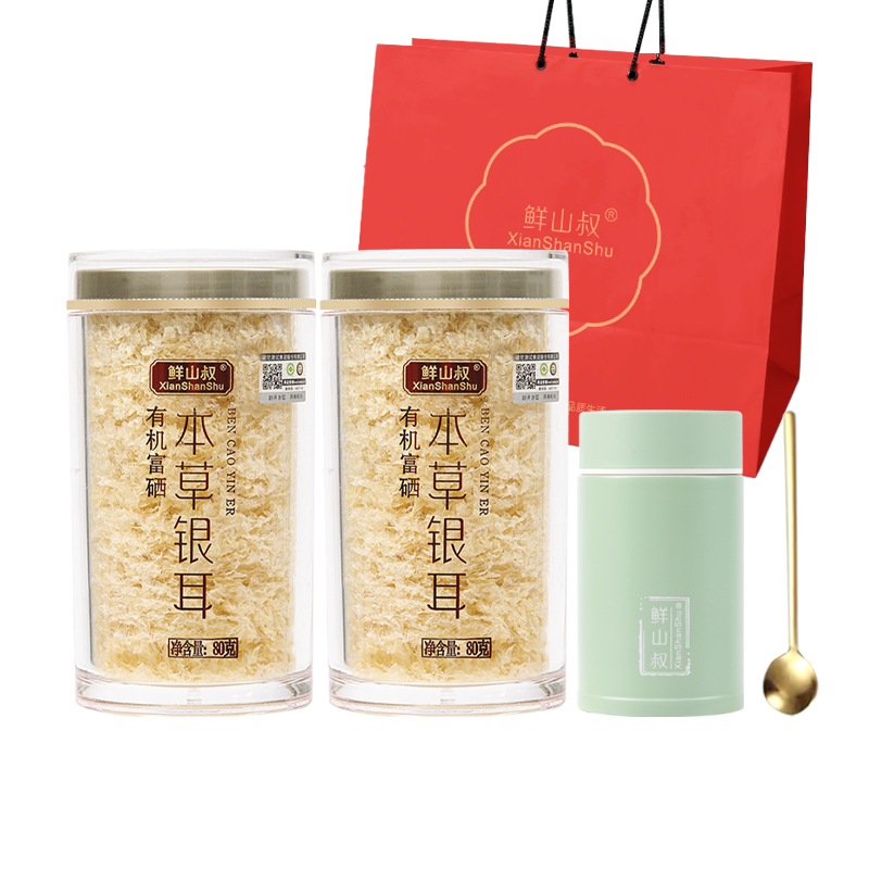 鲜山叔 有机富硒本草银耳80g/2罐 【送260ml焖烧杯+小勺子+礼袋】