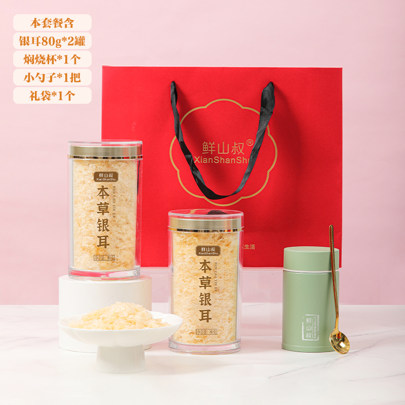 鲜山叔 (精选)本草银耳80g*2罐【送焖烧杯+小勺子+礼袋】