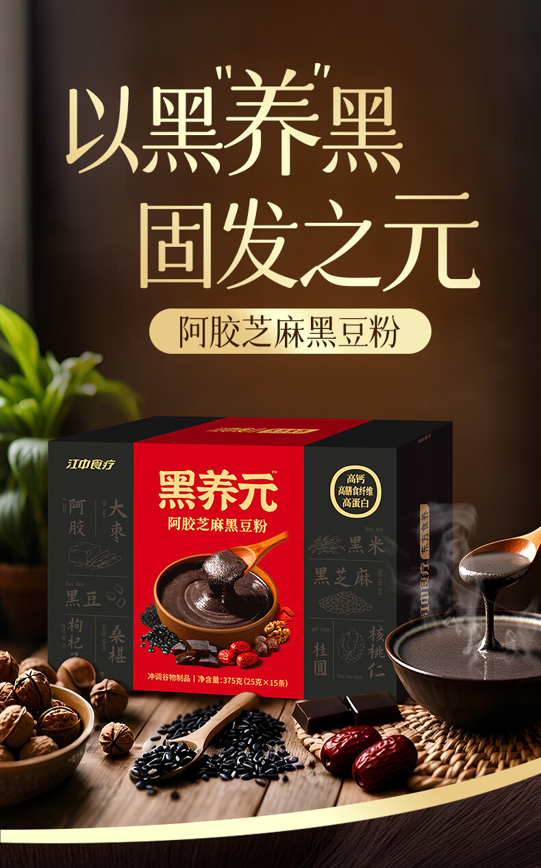 江中食疗黑养元阿胶芝麻黑豆粉375g