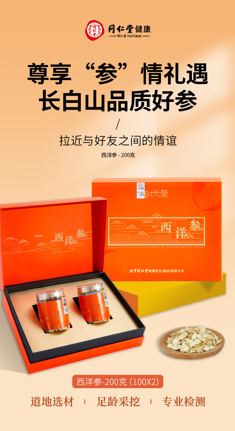 北京同仁堂时光氧国产西洋参片200克(100克*2)