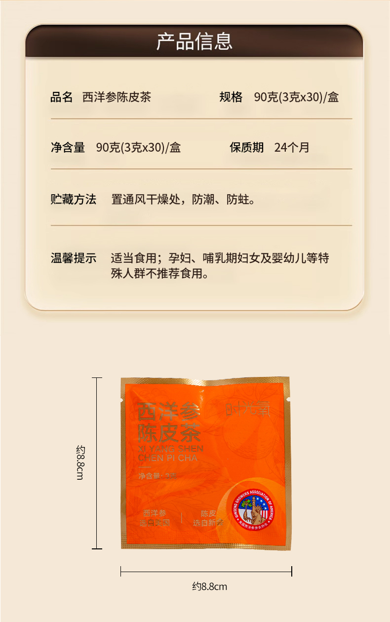 北京同仁堂时光氧美国西洋参陈皮茶90克(3克*30袋)