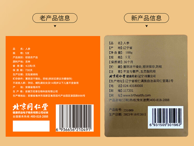 北京同仁堂造养青年人参礼盒5支100克