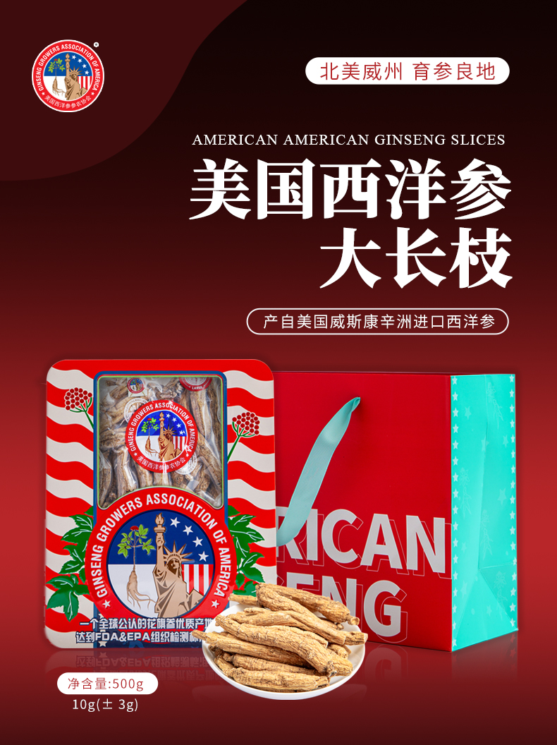 美国西洋参参农协会大长枝10g(±3g)500克/盒