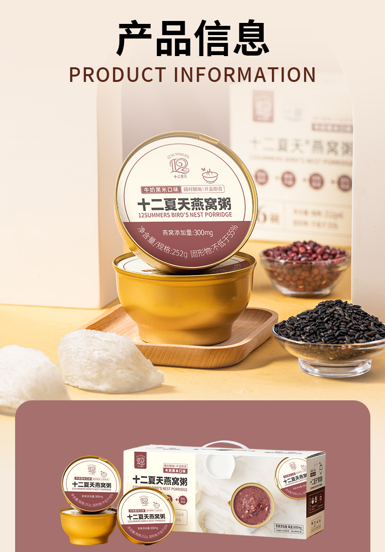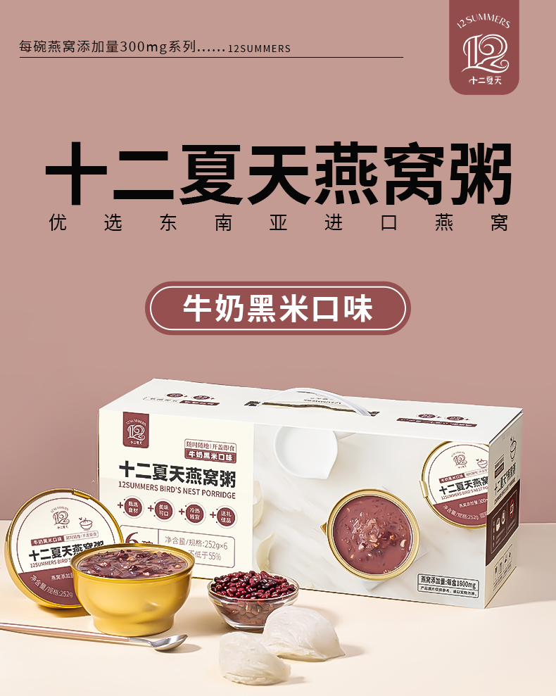 十二夏天燕窝粥黑米牛奶口味 252g*6碗/盒
