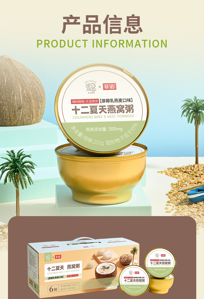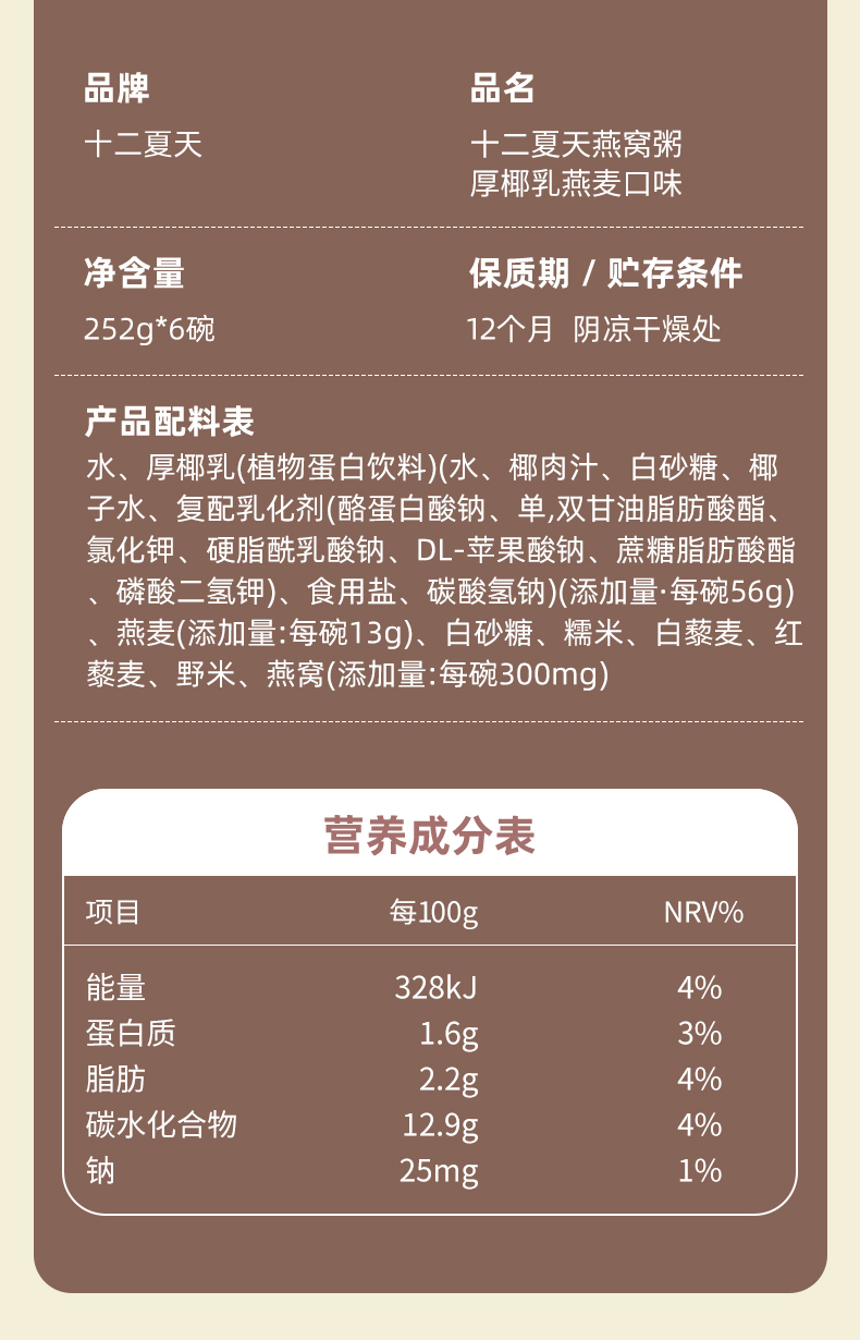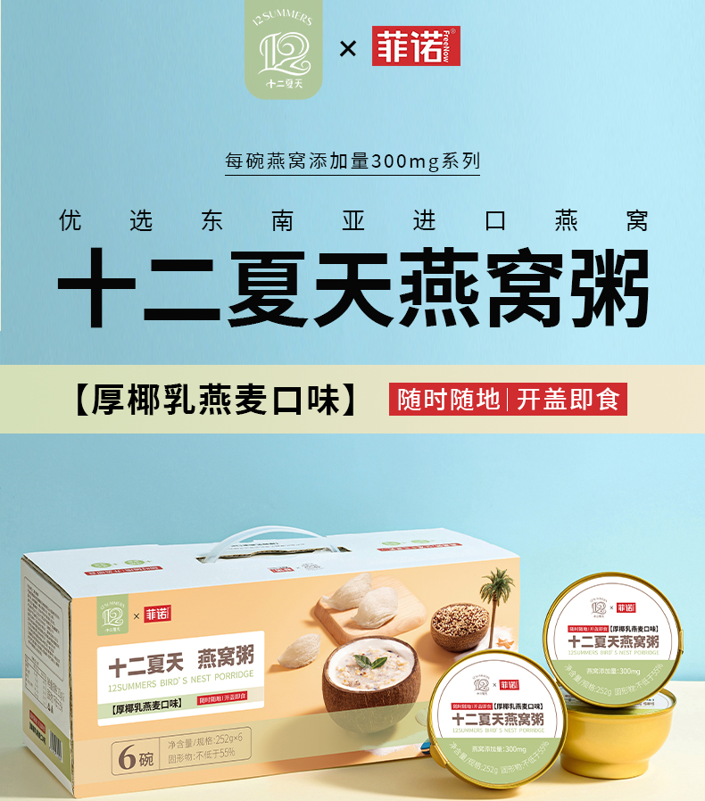 十二夏天燕窝粥厚椰乳燕麦口味 252g*6碗/盒
