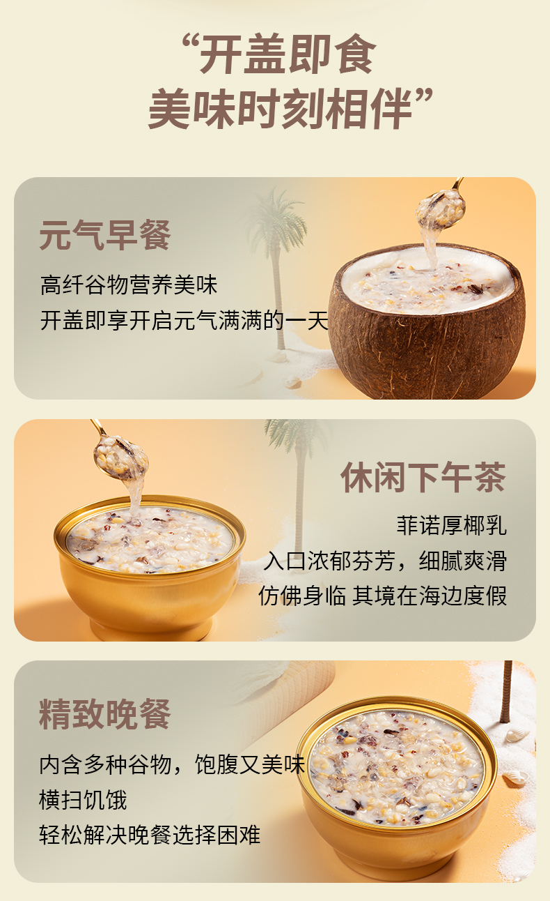 1.联名爆火菲诺,独家配方口味 2.鲜榨厚椰乳碰撞丝滑燕窝,搭配“超级食物”核心保鲜技术。
