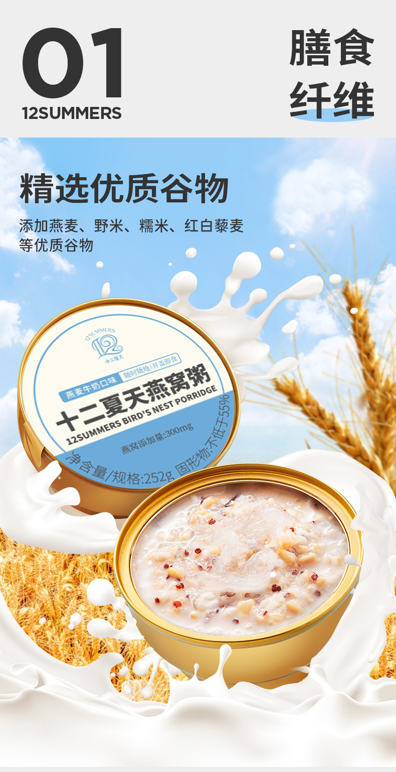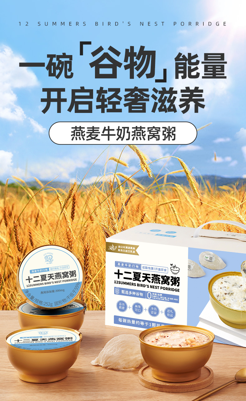 十二夏天燕窝粥燕麦牛奶口味 252g*6碗/盒