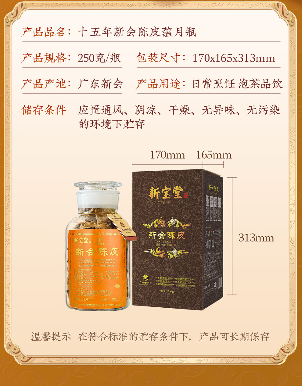 【新宝堂】 十五年陈皮 蕴月瓶250g