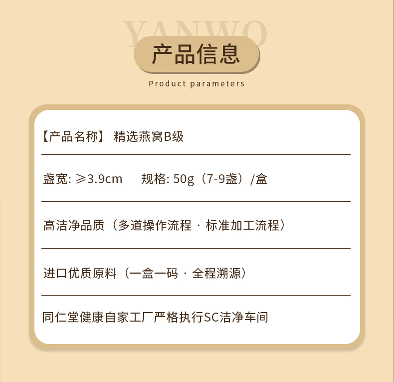 北京同仁堂时光氧印尼燕窝精选B 50克