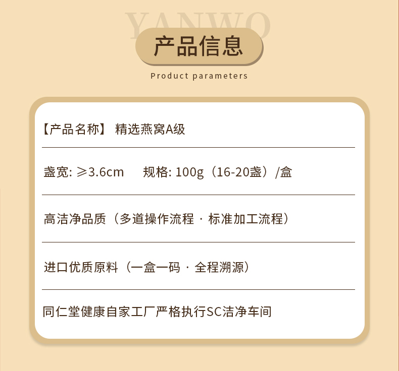 北京同仁堂时光氧印尼燕窝(红盒)精选A 100克