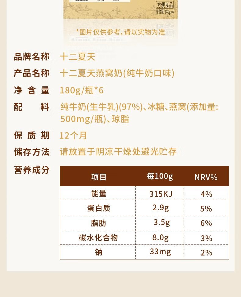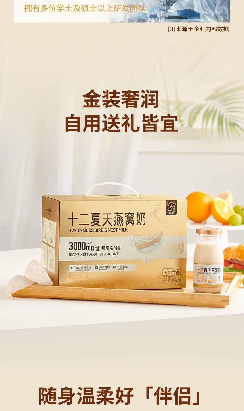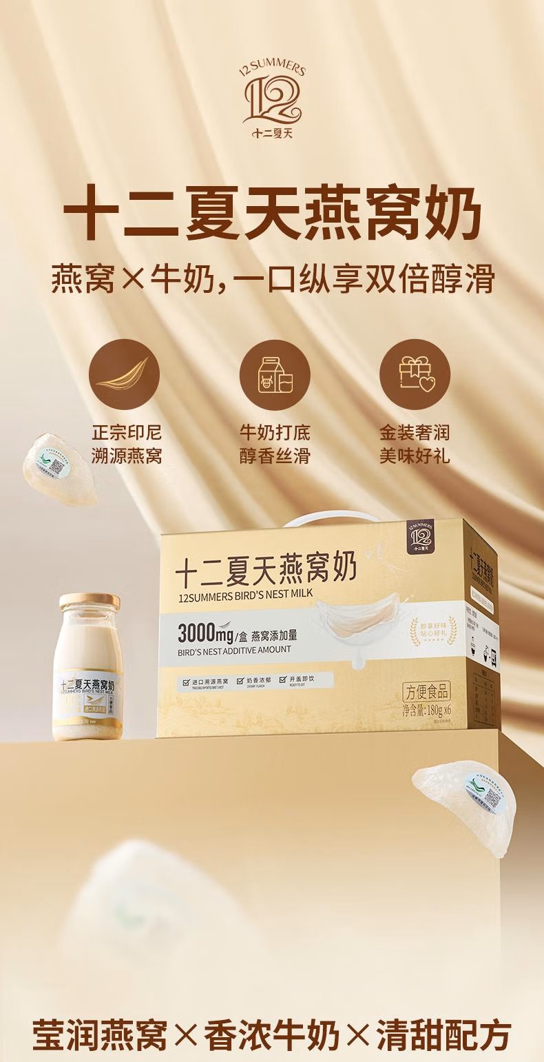 十二夏天牛奶燕窝 180g*6瓶/盒