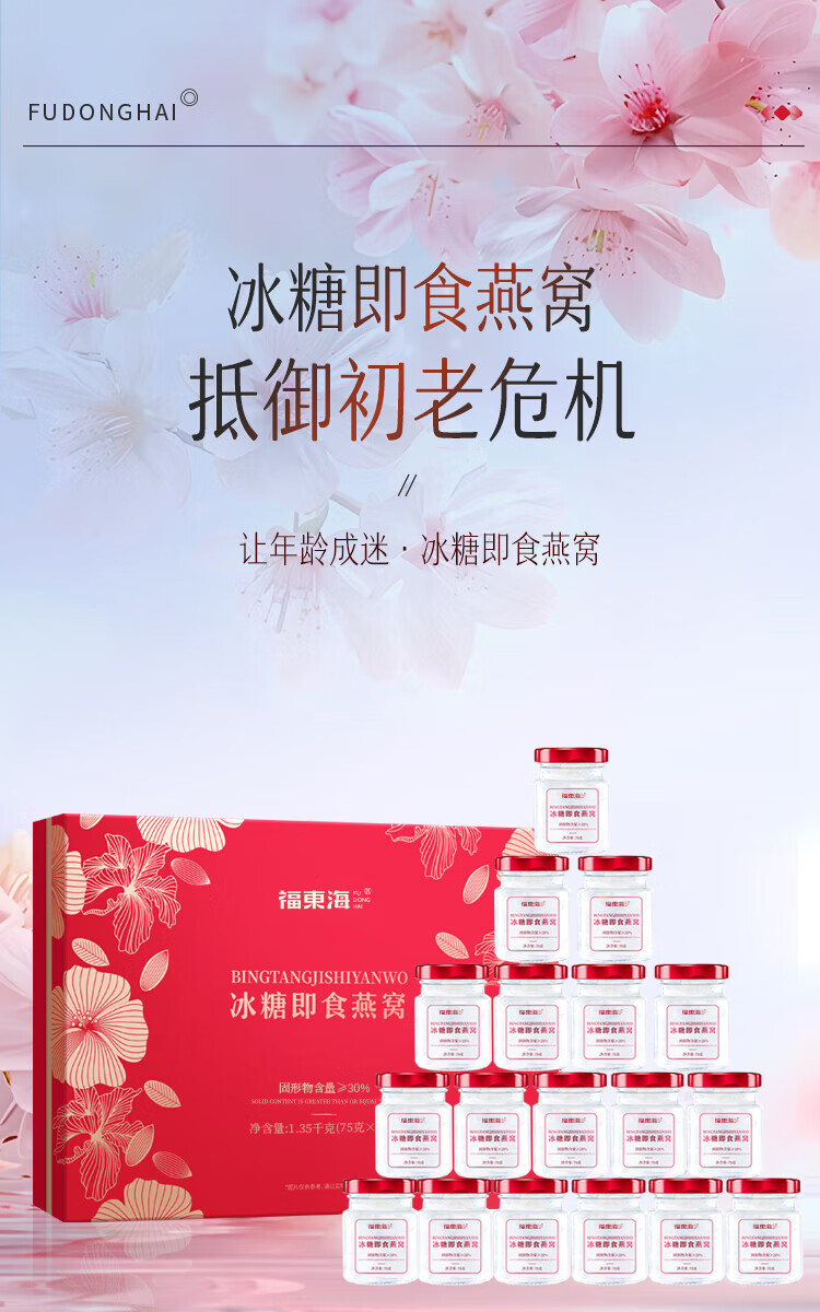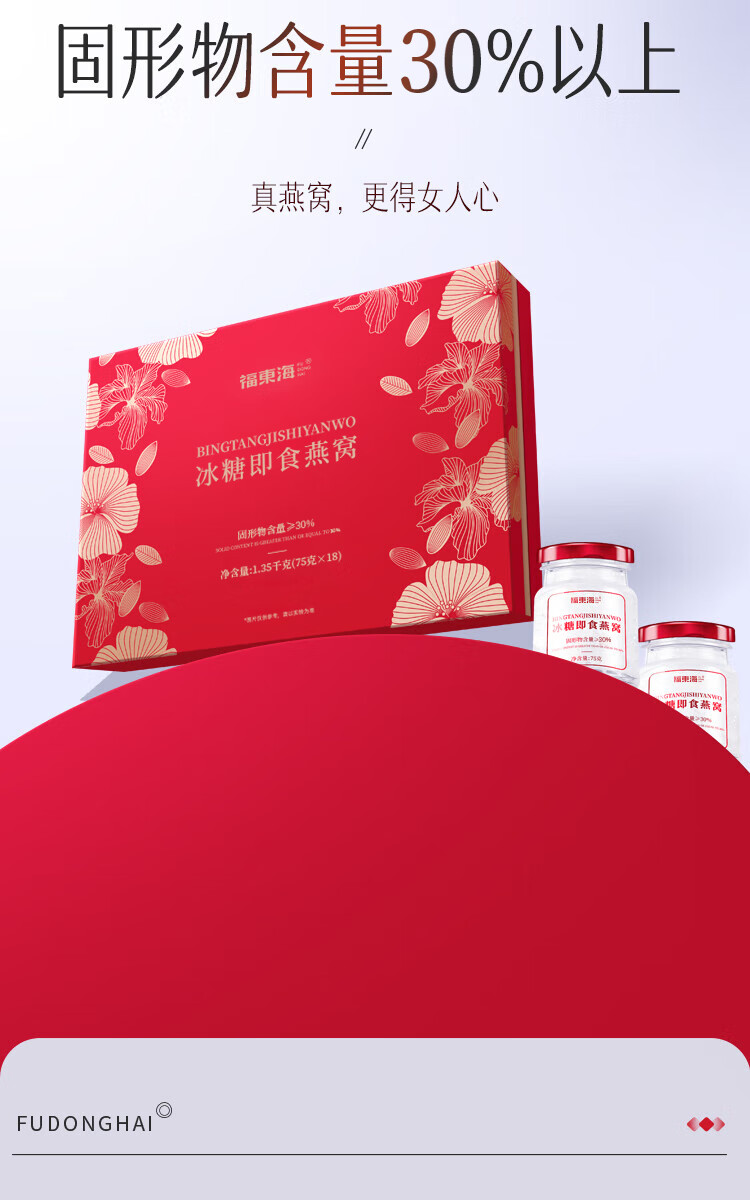 【福东海-特渠】冰糖即食燕窝1.35千克(75克x18瓶)--固形物30%