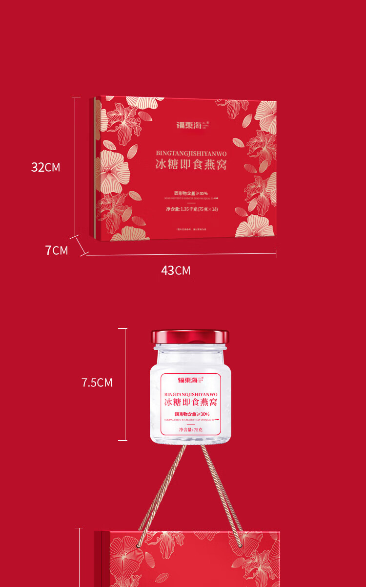 冰糖即食燕窝1.35千克(75克x18瓶) /盒+礼袋